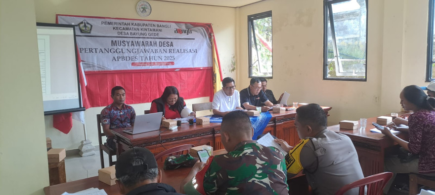 Telah Diadakannya Musyawarah Desa Pertanggungjawaban Realisai APBDES Tahun 2025 di Aula Kantor Desa Bayung Gede yang dimulai dari pukul 09:00 sampai selesai.