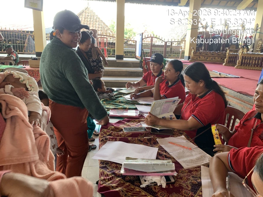 Kegiatan Posyandu Ratna1, BKB Mawar 1 dan Posbindu, di Laksanakan secara Bersama pada hari senin, 13 April 2026 di Balai Banjar Desa Bayung Gede yang dimulai dari pukul 08:00 sampai selesai, Balita yang hadir dalam kegiatan posyandu akan mendapatkan pelayanan kesehatan berupa pengukuran berat dan tinggi badan, pemberian imunisasi serta penyuluhan tentang kesehatan pada balita dan balita akan mendapatkan PMT. sedangkan pada kegiatan posbindu akan mendapatkan Pelayanan kesehatan berupa pengukuran berat dan tinggi badan, pengecekakan tensi, gula darah, kolestrol dan asam urat